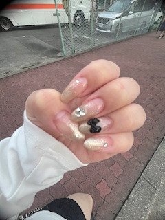 こんばんは!めいです^^最近早起きに心がけていて、寝不足でも頑張って早起きしてます☀️✨️やっぱり太陽の光に当たると、すごく元気が出て病むことも少なくなる気がする笑すっごく気持ちが良いのでできる日はなるべく早起きして動きたいなと思います(笑)今日は早起きしてネイル行ったよ〜!いつもはしないゴールドのラメのデザインですっごく可愛いの🥹🩷ぜひ見に来てください😊今日も出勤です🪄